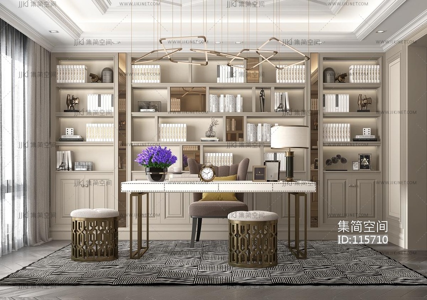 美式轻奢书房 3d模型下载 [模型ID:115710]