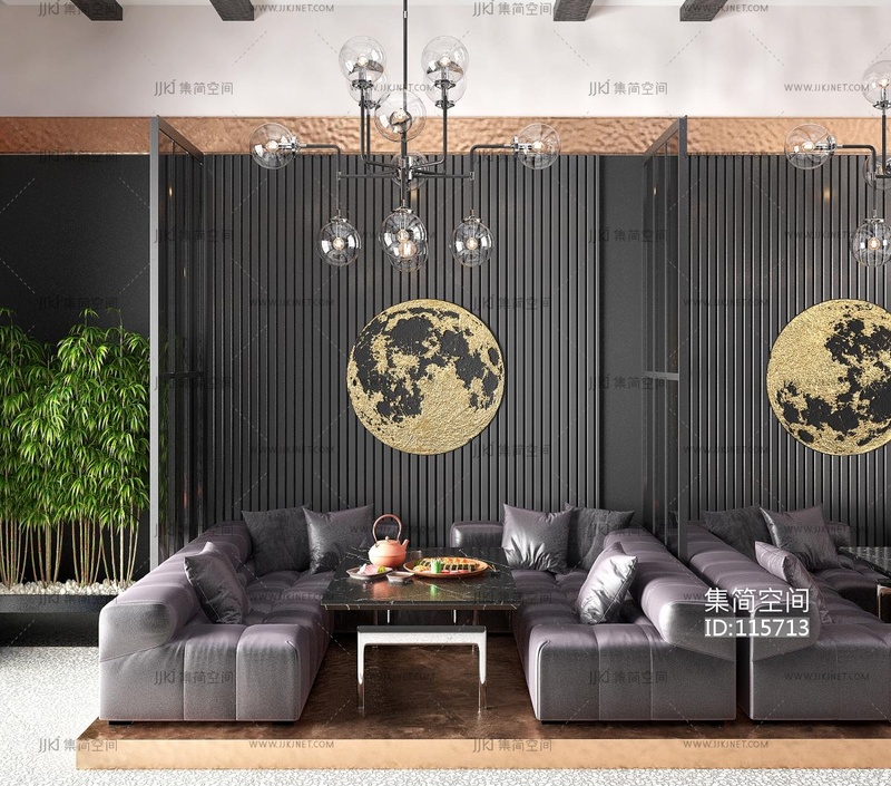 现代轻奢新中式接待室3d模型下载