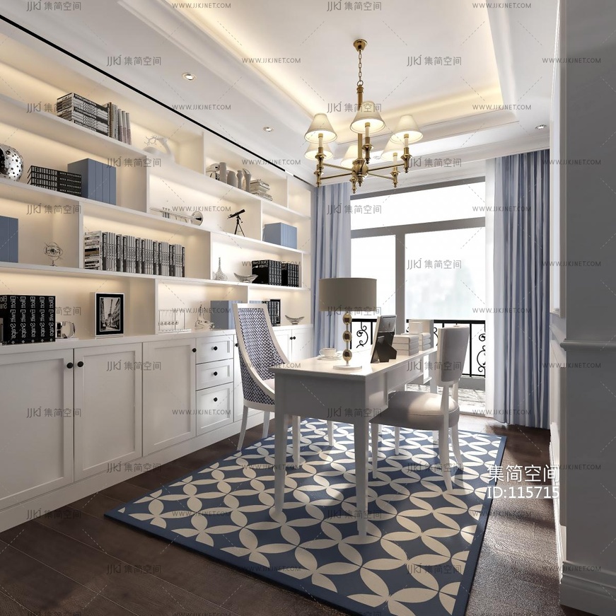现代欧式书房 3d模型下载 [模型ID:115715]