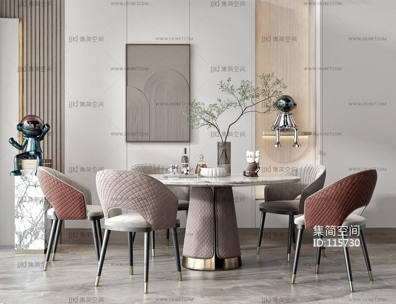 13-现代奶油风餐厅3d模型下载