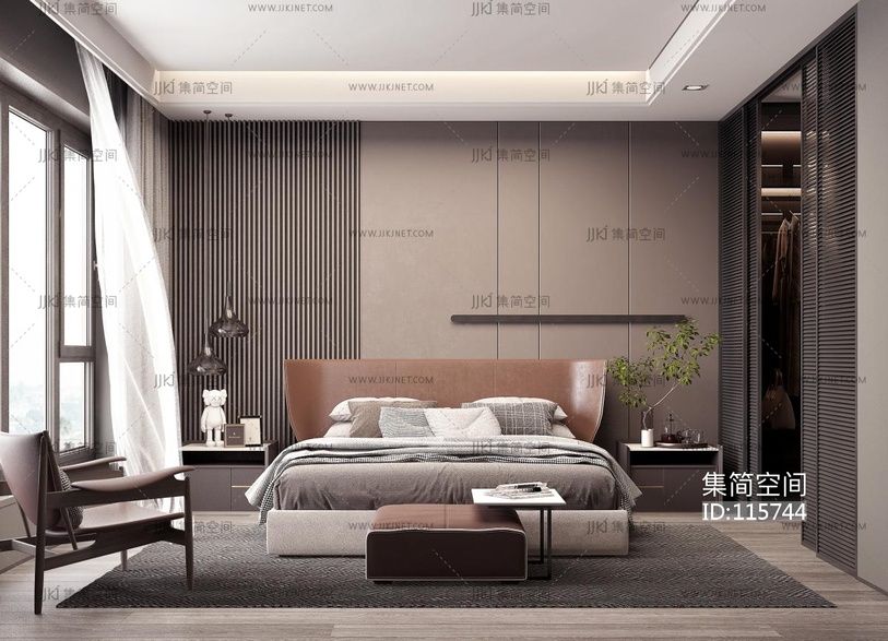 现代高级灰卧室 3d模型下载 [模型ID:115744]