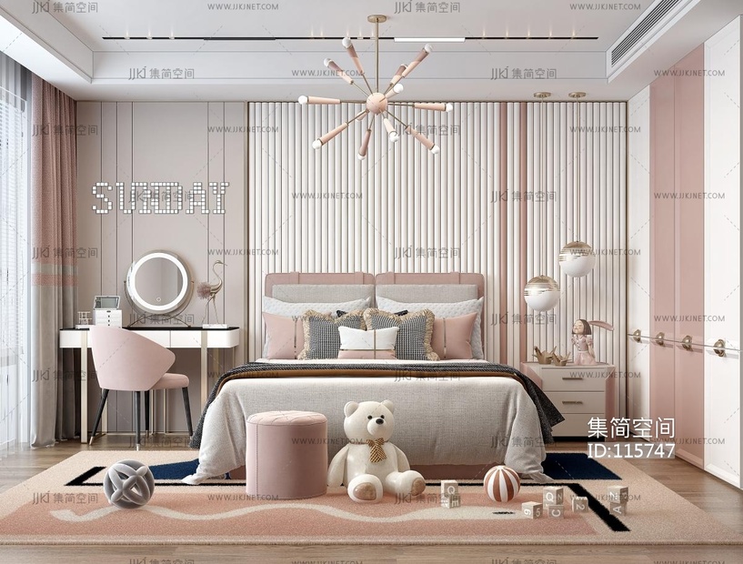 现代儿童房 女孩房 3d模型下载 [模型ID:115747]