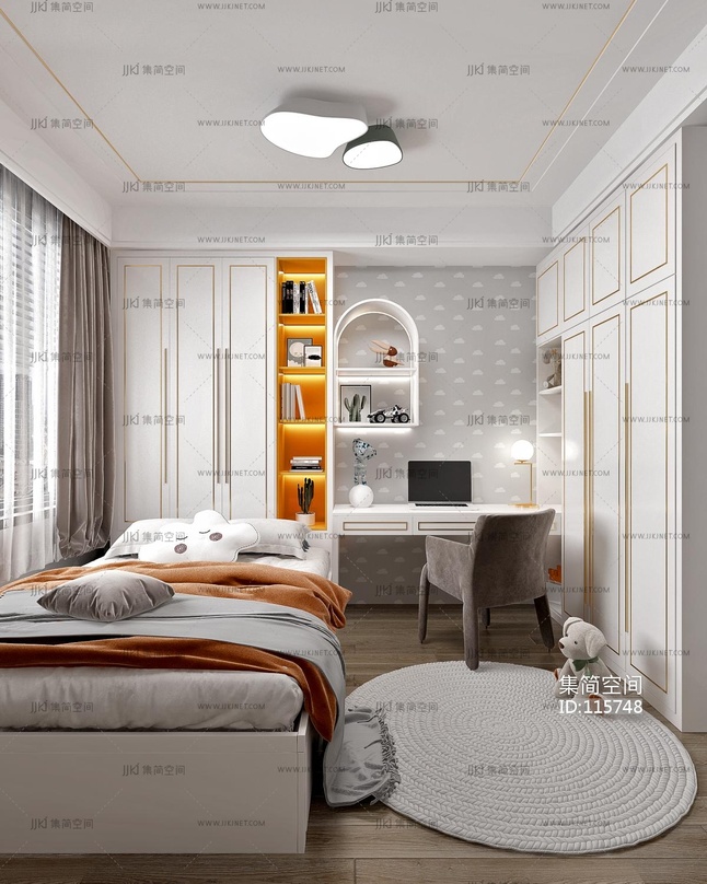 07-现代儿童房,儿童床学习桌-3d模型下载