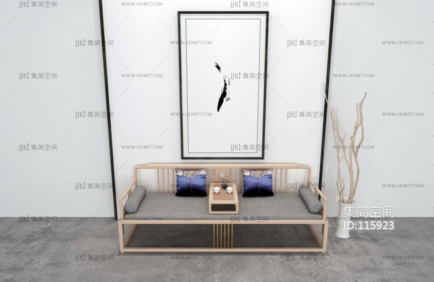 新中式罗汉床 3d模型下载 [模型ID:115923]
