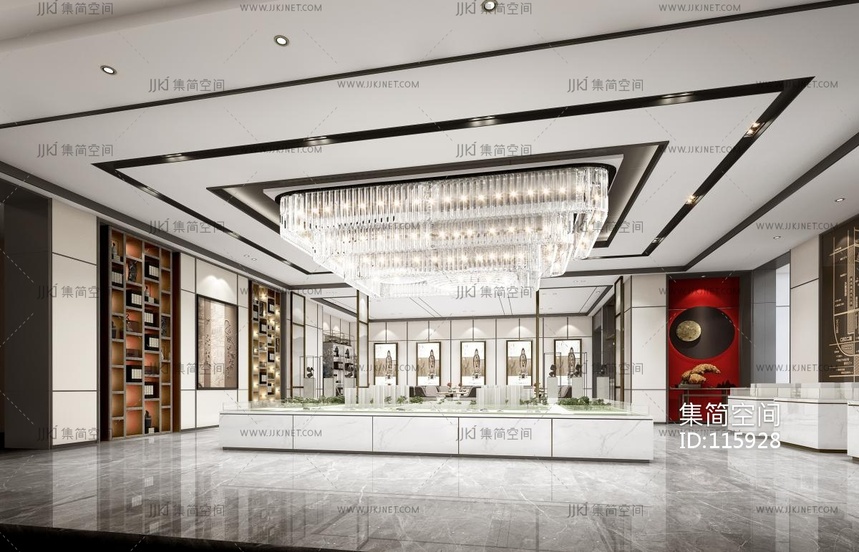 新中式售楼处 3d模型下载 [模型ID:115928]