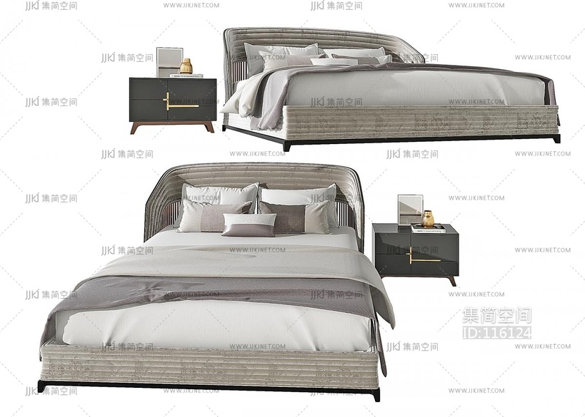 现代双人床,床头柜 组合 3d模型下载 [模型ID:116124]