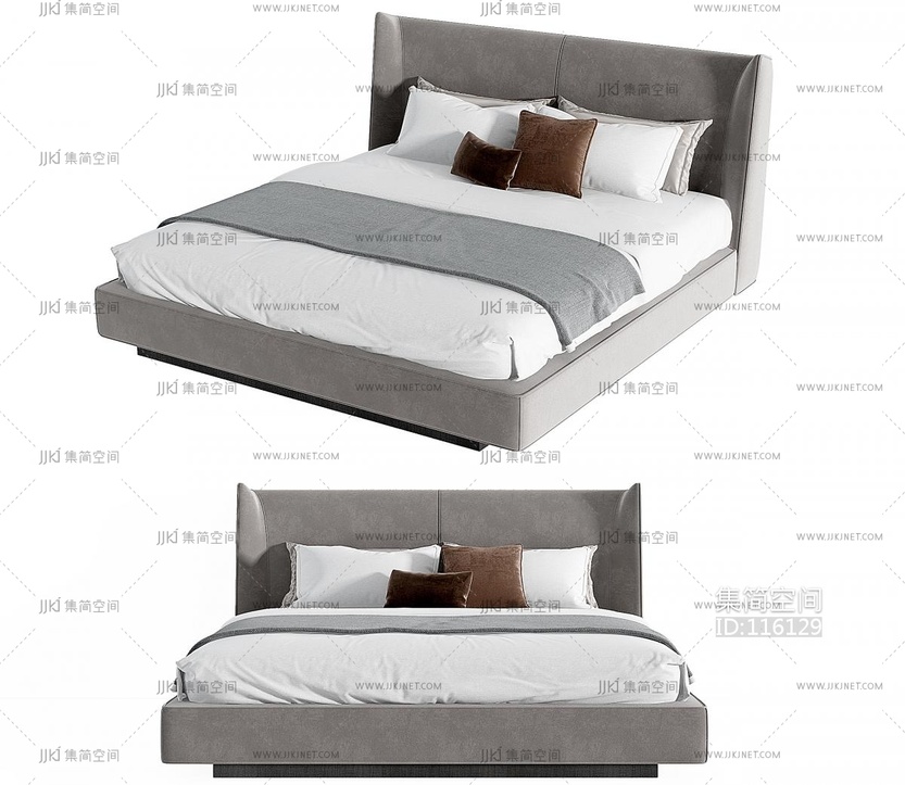 现代双人床 床具 (1) 3d模型下载 [模型ID:116129]