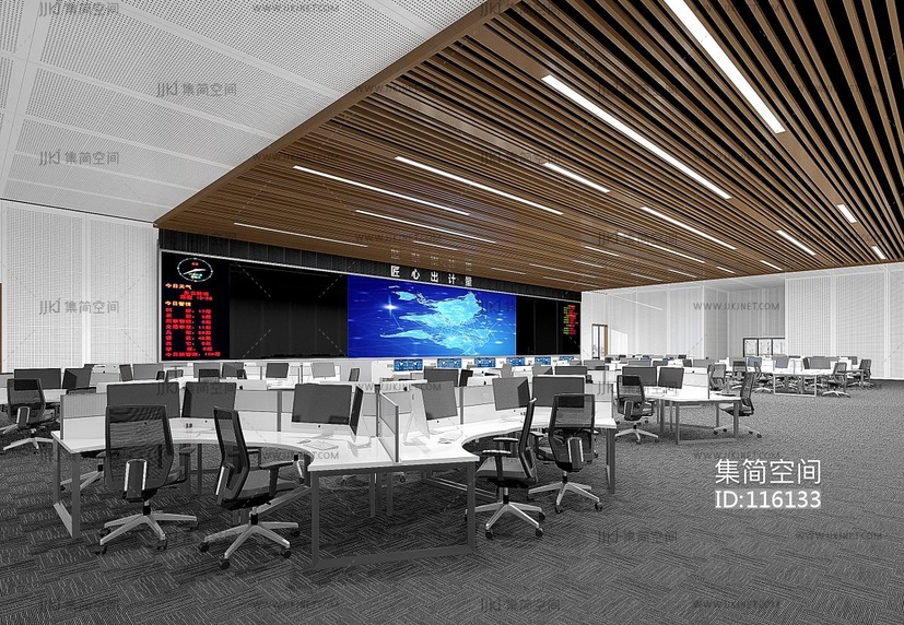 现代开敞开放办公室 3d模型下载 [模型ID:116133]