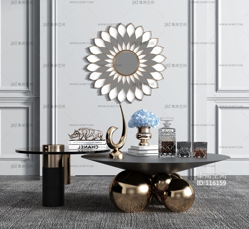 现代轻奢茶几 摆件 酒水 3d模型下载 [模型ID:116159]