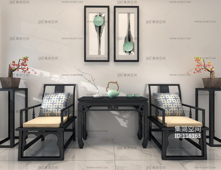 中式椅子案台组合 3d模型下载 [模型ID:116163]