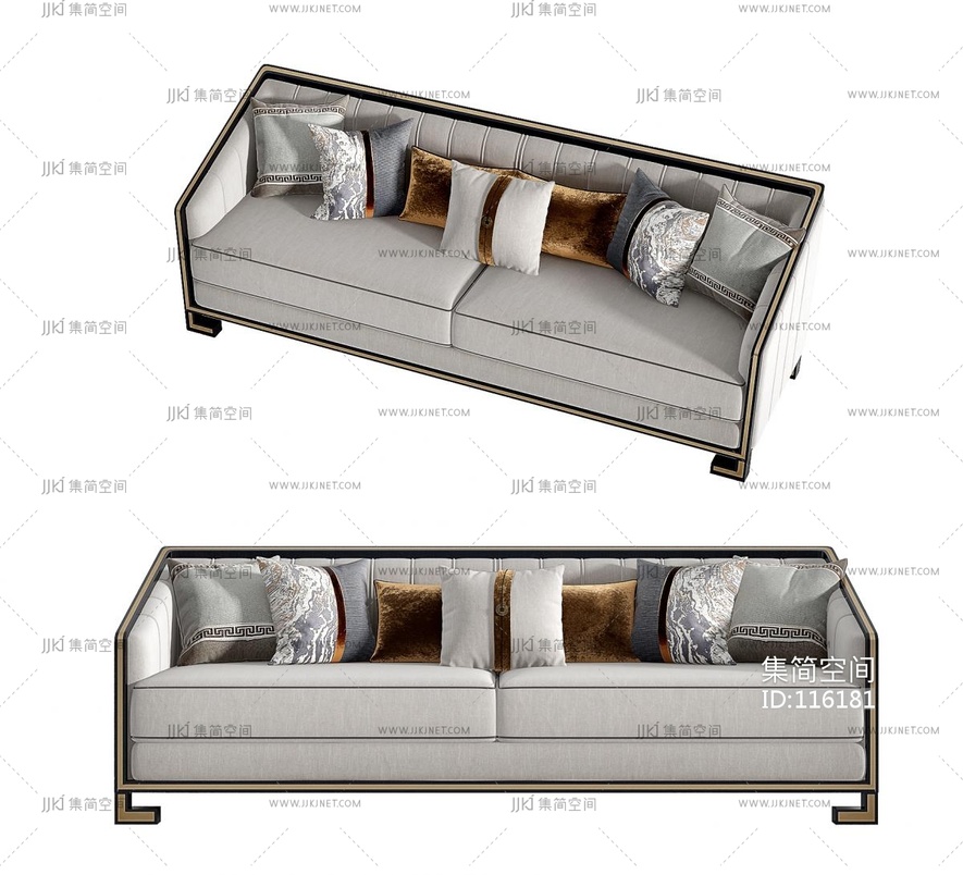 新中式三人沙发_抱枕 3d模型下载 [模型ID:116181]