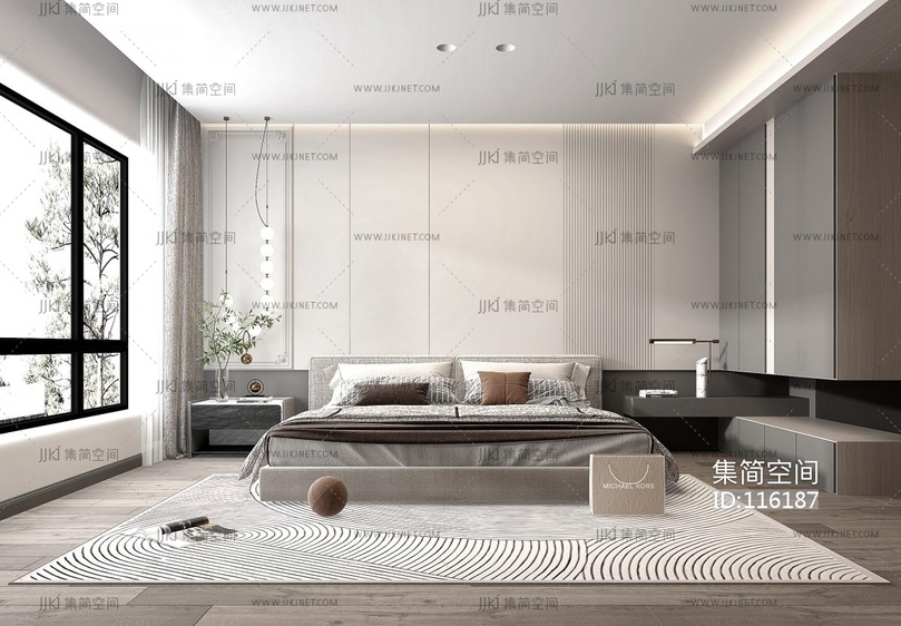 6法式中古家居卧室_主卧_飘窗卧室_高级灰卧室3D模型cr3d模型下载
