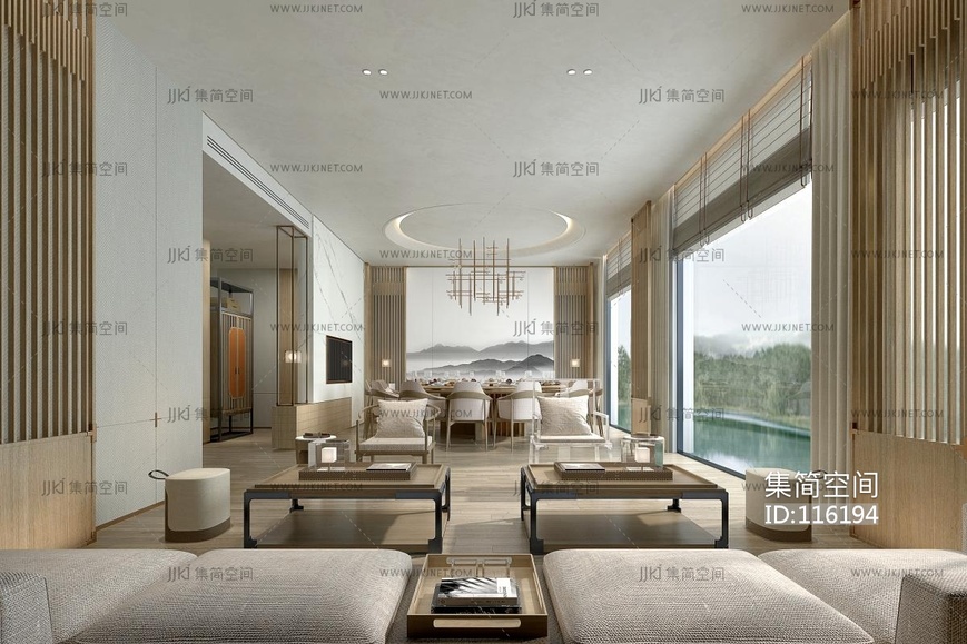 新中式酒店餐厅 3d模型下载 [模型ID:116194]