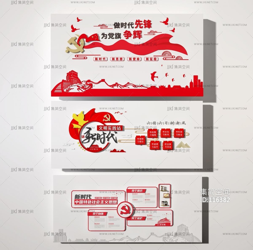 现代党建文化宣传墙文化墙_宣传栏 3d模型下载 [模型ID:116382]