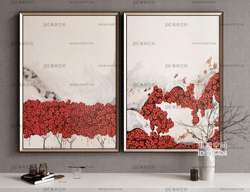 新中式梅花装饰画_挂画_ 3d模型下载 [模型ID:116404]