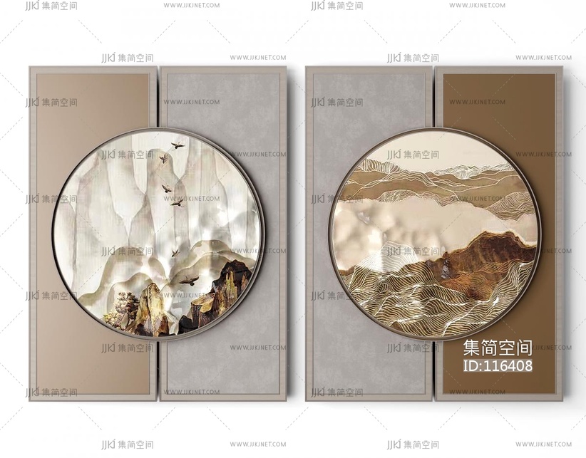 新中式装饰画_挂画 3d模型下载 [模型ID:116408]