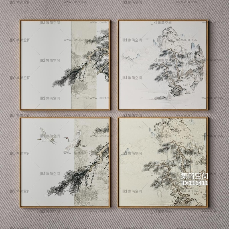新中式装饰画_挂画 3d模型下载 [模型ID:116411]