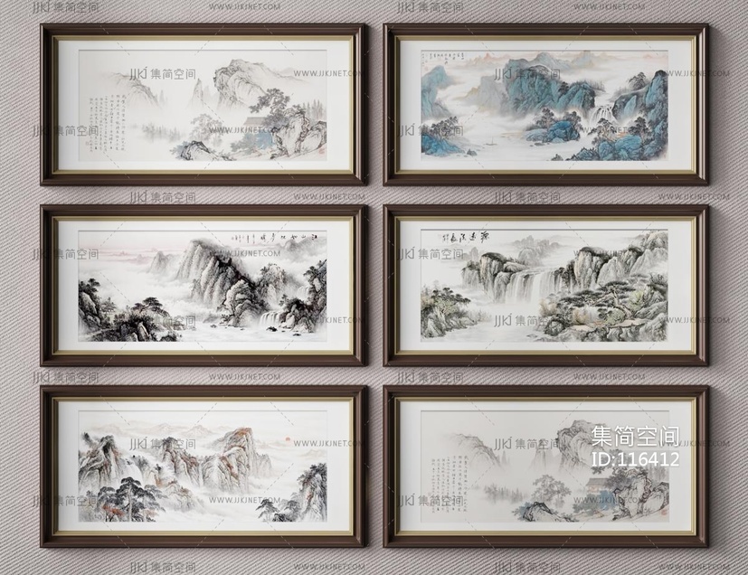 新中式山水装饰画_挂画_ 3d模型下载 [模型ID:116412]