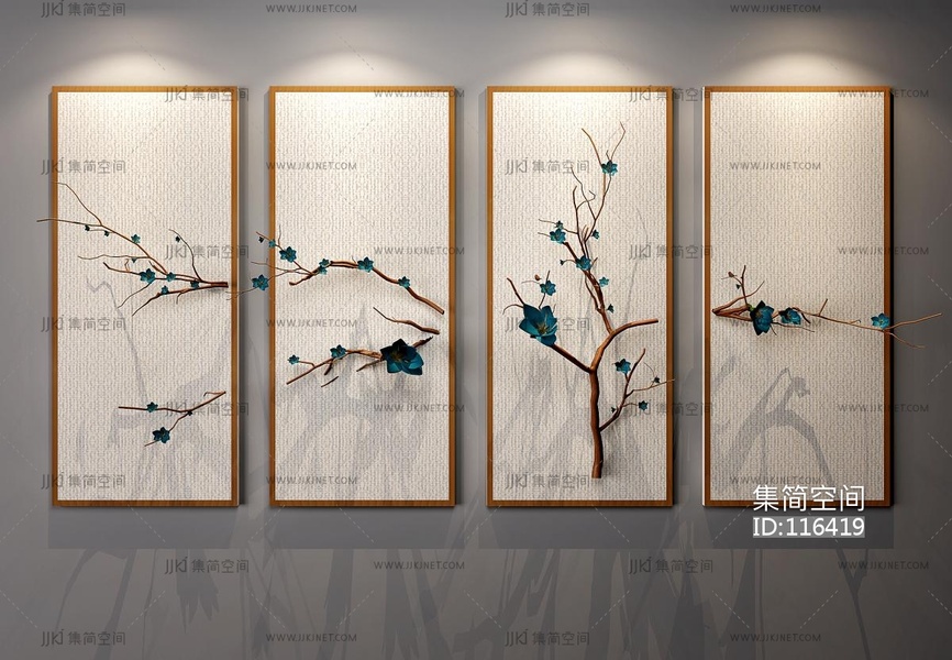 中式树枝立体装饰画组合 3d模型下载 [模型ID:116419]