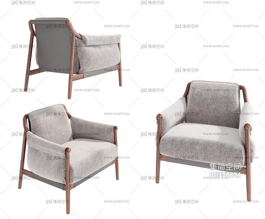 新中式单人休闲椅 3d模型下载 [模型ID:116424]
