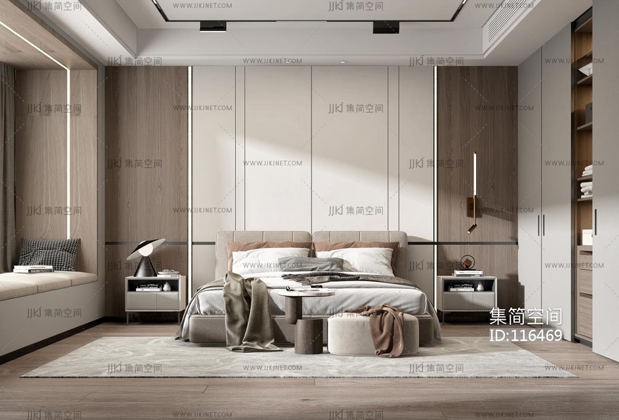 6法式中古家居卧室_主卧_飘窗卧室_高级灰卧室3D模型cr3d模型下载