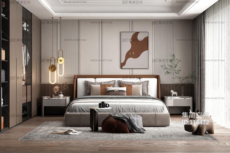现代轻奢卧室 3d模型下载 [模型ID:116472]