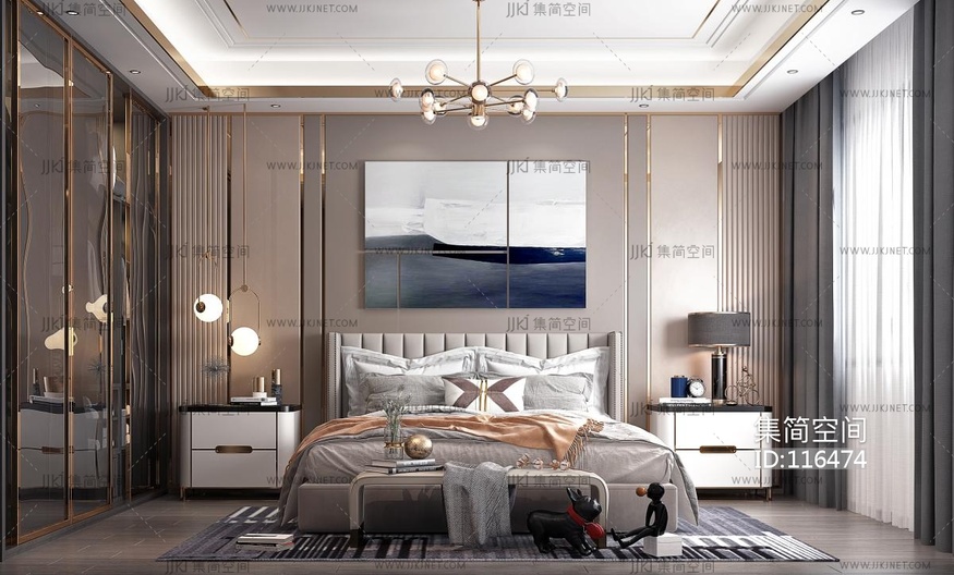 现代轻奢简欧式卧室 3d模型下载 [模型ID:116474]