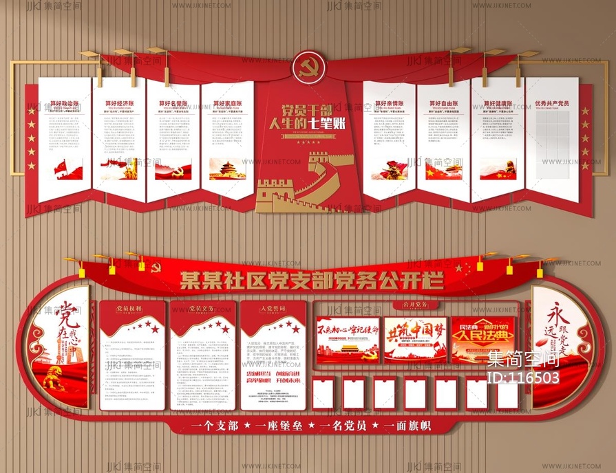 党建文化墙_宣传栏_文化栏 (2) 3d模型下载 [模型ID:116503]