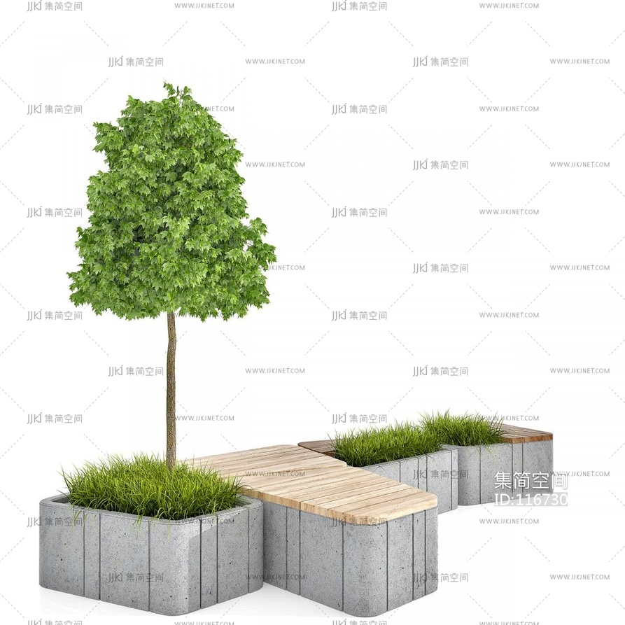 现代树池_公共座椅 3d模型下载 [模型ID:116730]