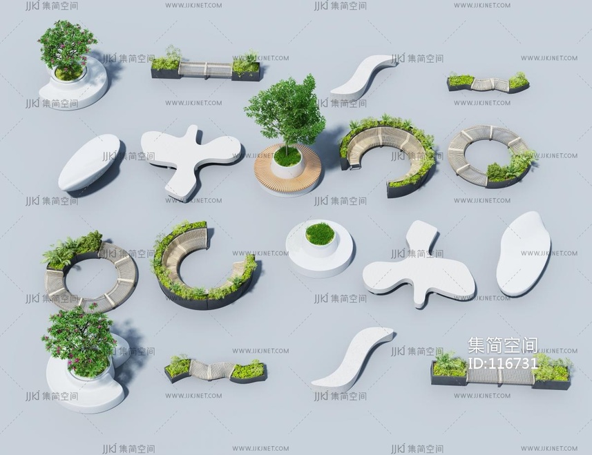 现代圆形异形,户外椅公共座椅 3d模型下载 [模型ID:116731]