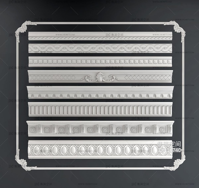 简欧式雕花石膏线 3d模型下载 [模型ID:116740]