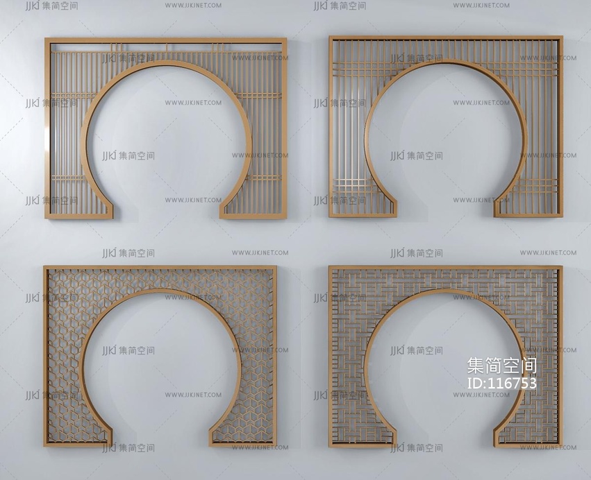 新中式屏风_隔断门洞月亮门 3d模型下载 [模型ID:116753]