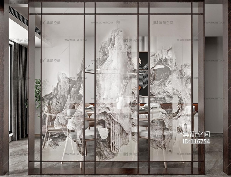 新中式屏风隔断 3d模型下载 [模型ID:116754]