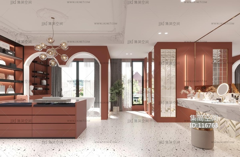 简欧别墅卫生间_梳妆台 3d模型下载 [模型ID:116763]