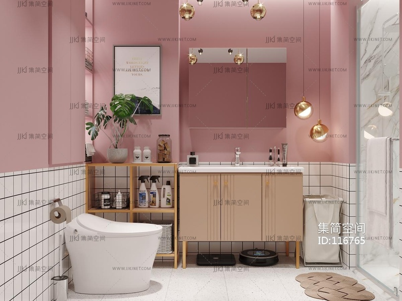 奶油风卫生间(3d模型下载