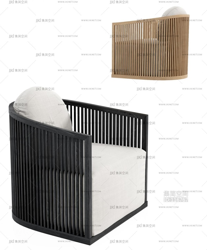 新中式布艺单人沙发 3d模型下载 [模型ID:116767]