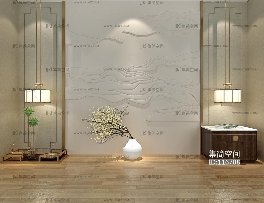 新中式浮雕皮雕床头背景墙_ 3d模型下载 [模型ID:116788]