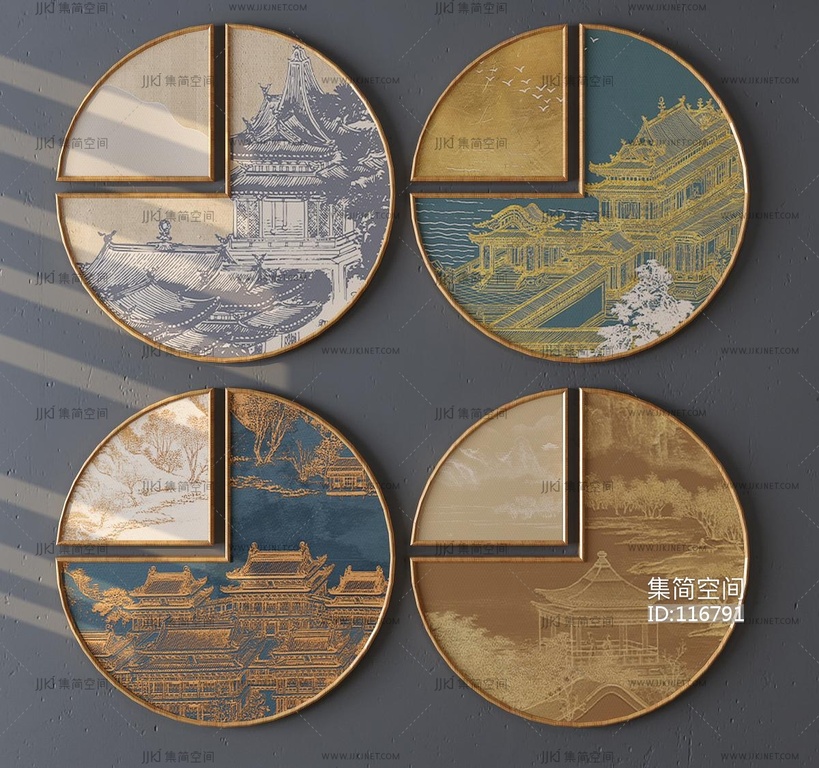 新中式圆形装饰画挂画 3d模型下载 [模型ID:116791]