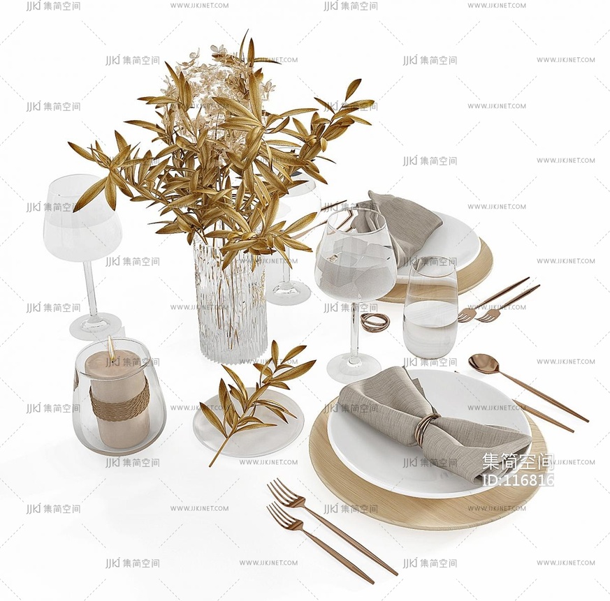现代餐具摆件组合 3d模型下载 [模型ID:116816]
