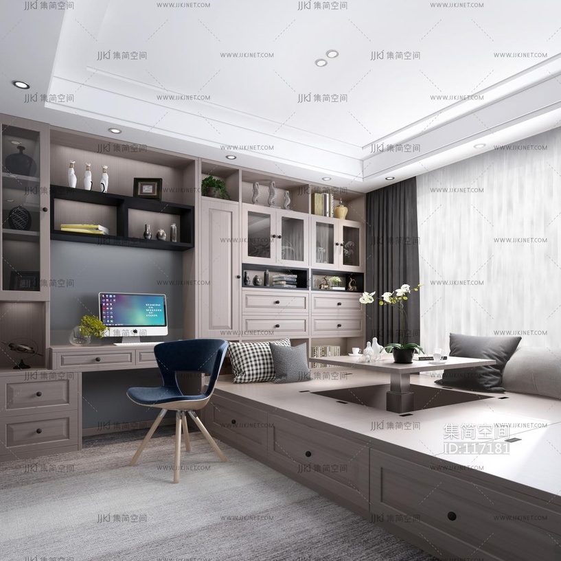 现代榻榻米书房 3d模型下载 [模型ID:117181]