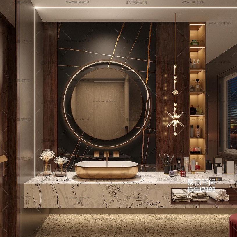 法式奶油风卫生间_洗手盆_马桶抽纸盒花瓶3D模型3d模型下载