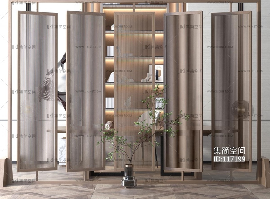 -新中式隔断3d模型下载