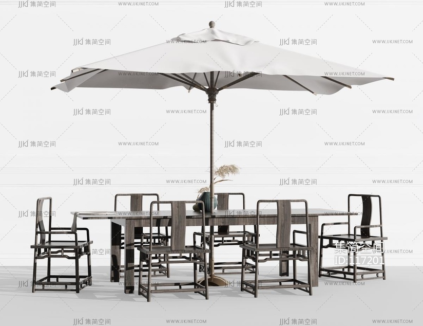 新中式休闲桌椅组合 3d模型下载 [模型ID:117201]