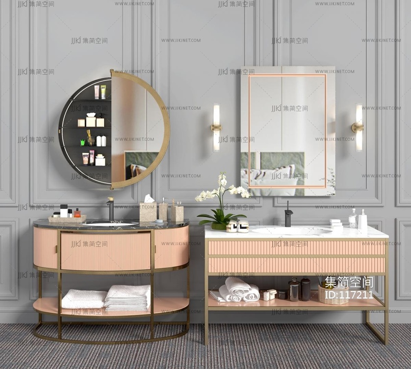 现代轻奢卫浴柜洗手池 (1) 3d模型下载 [模型ID:117211]