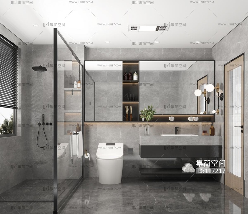 法式奶油风卫生间_洗手盆_马桶抽纸盒花瓶3D模型3d模型下载