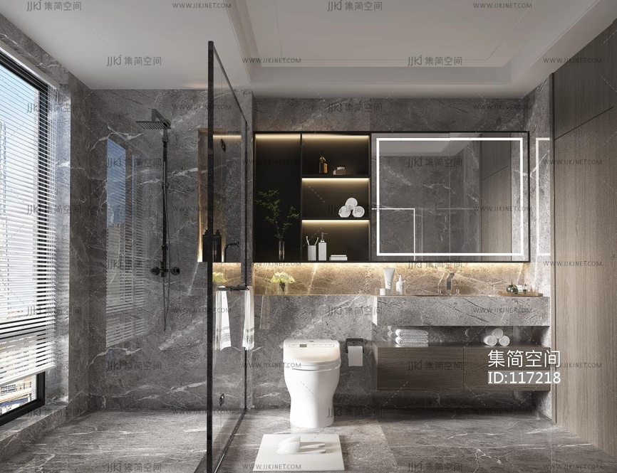 法式奶油风卫生间_洗手盆_马桶抽纸盒花瓶3D模型3d模型下载