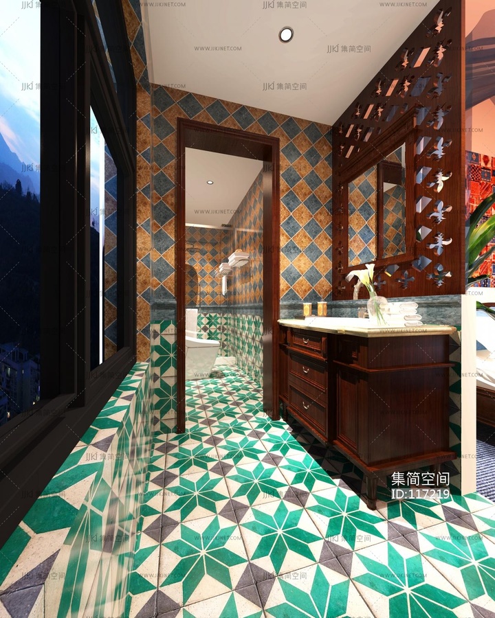 新古典摩洛哥卧室卫生间 3d模型下载 [模型ID:117219]