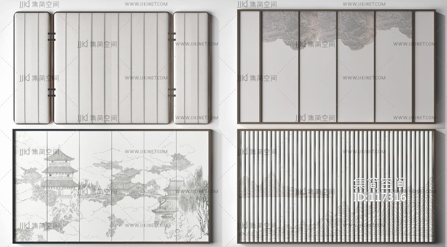 新中式皮革软包 3d模型下载 [模型ID:117316]