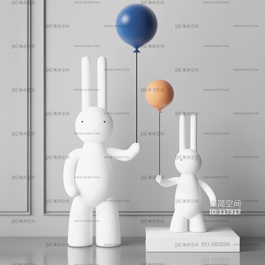 现代雕塑_兔子雕塑摆件 3d模型下载 [模型ID:117317]