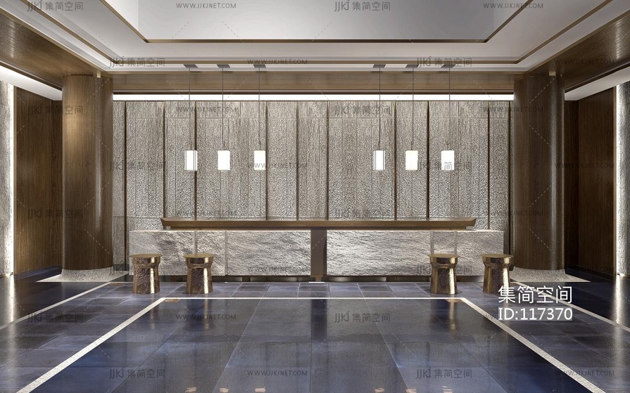 新中式酒店会所前台,接待台 3d模型下载 [模型ID:117370]